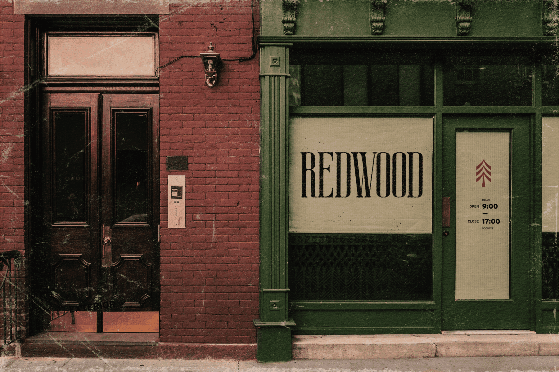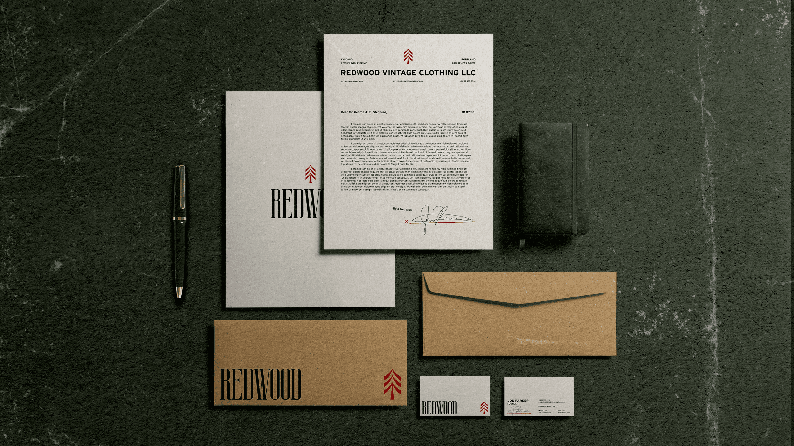 The name "Redwood" represents the longevity of these classic vintage garments, just as a redwood tree's everlasting lifespan. The tall logotype imitates the tall tree line of a redwood forest, while the tree pictorial mark is a nod at the word "up-cycle". The visuals and materials were chosen to have a hand-done, yet modern feel targeted toward upper-middle-class men with an appreciation for heritage, style, and quality.